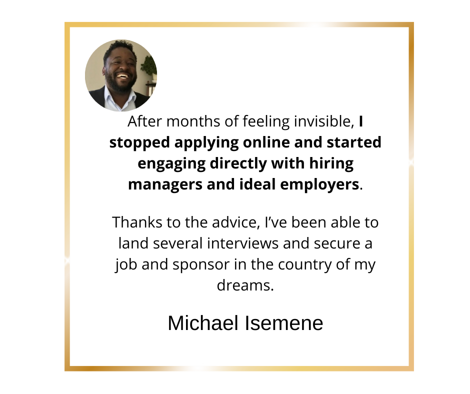 Watch this video to learn how Mike became the most visible, most valuable candidate, and landed his $200K+ role in New Zealand, as an immigrant - without applying online, and by implementing the visibility strategies as above